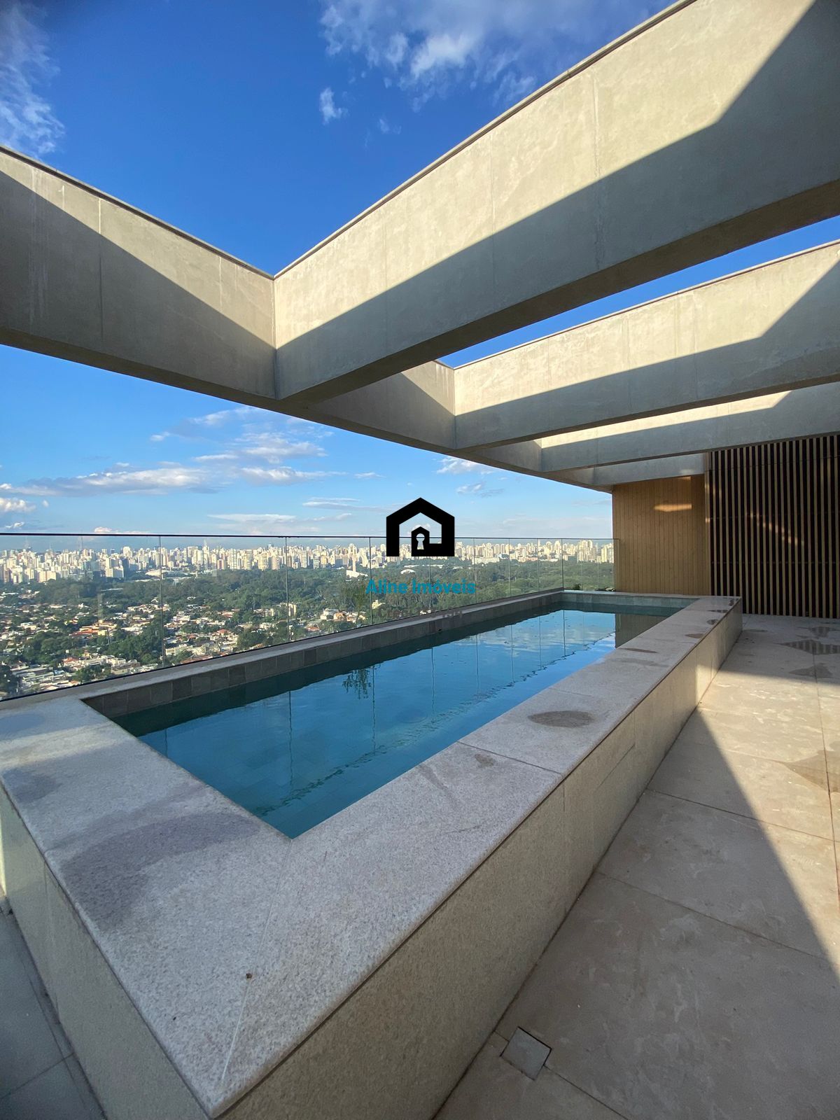 Metragem de 923 m², piscina privativa, 5 suítes, living para dois ambientes, varanda com piso nivelado com o living, ampla copa cozinha, área de serviço, dependências de empregada, estrutura para aparelhos de ar-condicionado e 7 vagas de garagem determinadas.